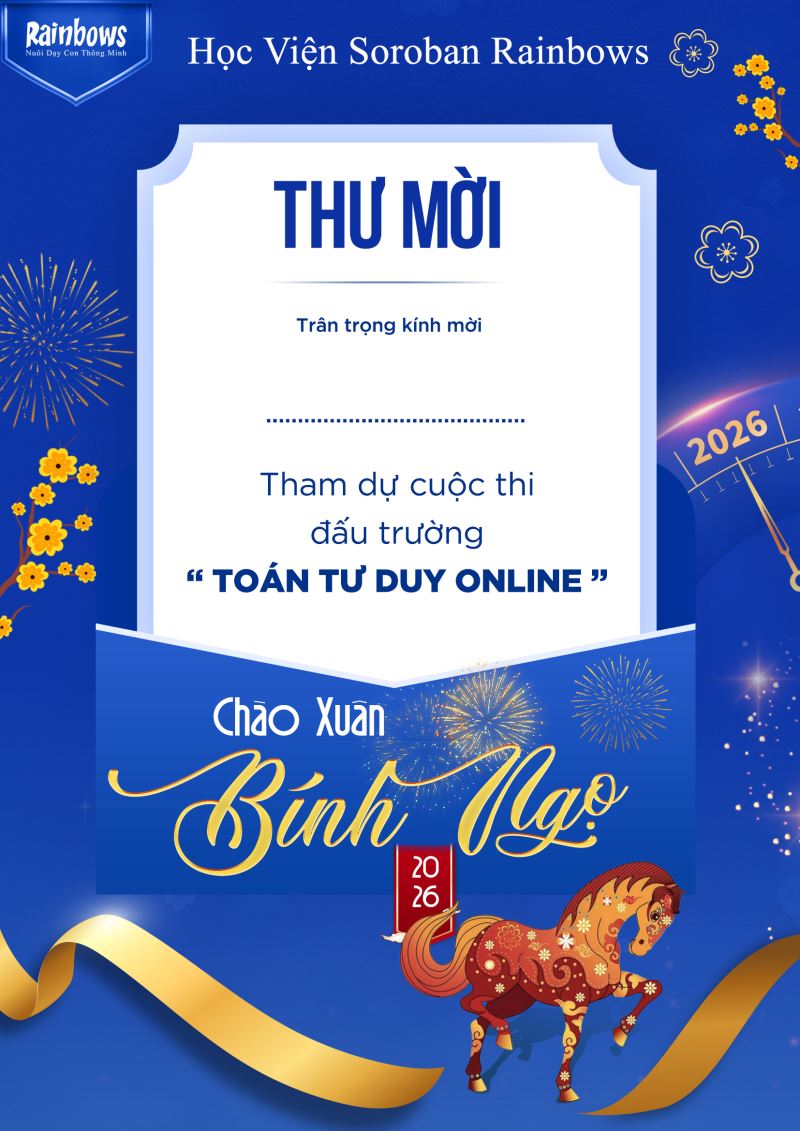 📢 🏫 Học viện Toán Tư Duy Rainbows chính thức công bố khởi động cuộc thi “Đấu Trường Trạng Nguyên – Phiên bản Online Chào Xuân Bính Ngọ 2026”, 👑 Tham gia cuộc thi, thí sinh không chỉ có cơ hội chinh phục danh hiệu “Trạng Nguyên Toán Học Online 2026”, 🌈 Cuộc thi hứa hẹn sẽ là điểm nhấn rực rỡ khép lại năm 2025, 📎 Thông tin chi tiết cuộc thi: 💌 File thư mời: 8. Thông tin tiếp nhận đăng ký dự thi VII. THÀNH PHẦN BAN GIÁM KHẢO Trân Trọng