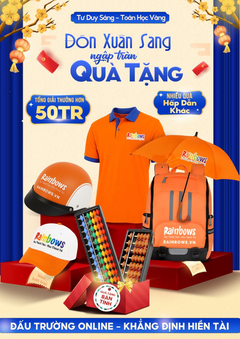 🎁 mà còn được nhận hàng ngàn phần quà hấp dẫn, 💵 tiền mặt giá trị, 📜 giấy chứng nhận danh dự, 🏆 cúp, 🥇 huy chương danh giá từ Học viện Rainbows!